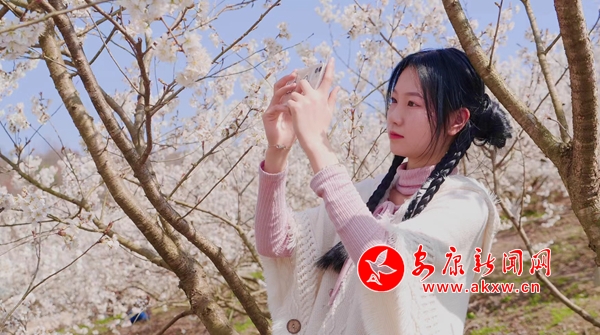 “期待了很久,終于等到李家溝櫻桃花盛開,這里漫山遍野,花開如雪,真的太美了,我們拍了不少好看的照片,真的是不枉此行。”正在用手機記錄這美好春光的游客王女士激動地說。