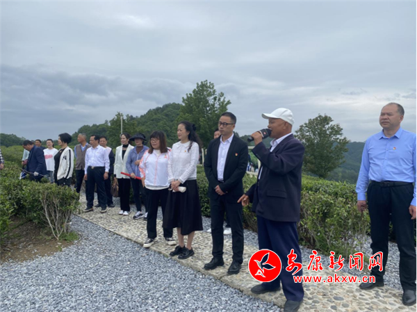 在女媧鳳凰茶業(yè)現(xiàn)代示范園區(qū),全體黨員干部在蔣家坪村原黨支部書記羅顯平的帶領(lǐng)下,追尋習(xí)近平總書記走過(guò)的足跡。一邊參觀綠水青山下的茶園美景,一邊感受綠水青山就是金山銀山的生態(tài)環(huán)境理念。