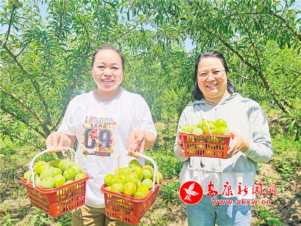 “今天過來摘幾個(gè)嘗一下,確實(shí)非常好吃,我摘了四五筐帶回去,讓老人家也嘗下鮮,看到他們今年還有精品禮盒裝的,我又給在外工作的親人也寄了幾盒走。”游客趙女士說。