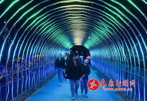 晚上八點(diǎn)夜幕降臨,中堰村篤敬農(nóng)業(yè)生態(tài)園內(nèi)一片燈光璀璨,造型各異的燈光秀給園區(qū)披上了流光溢彩的華衣,游客漫步其中駐足欣賞、拍照打卡留念,開啟一段沉浸式光影夜游之旅。