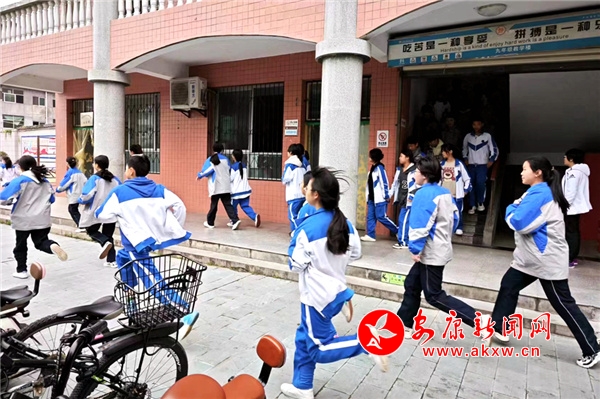 上午8時15分,隨著校園廣播發(fā)出的“警報聲”,全校教師及工作人員迅速到達指定崗位,40個教學班3000余名師生立即抱頭、捂鼻、蹲下就地避險。隨即,各班隨堂老師沉著冷靜,迅速指揮學生有序撤離教室,學生們緊張而不慌亂,聽從指揮,按規(guī)定線路、要求、有秩序地迅速疏散到安全聚集地。