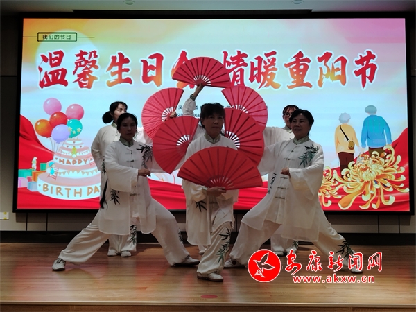演出在優(yōu)美的舞蹈《花樣功夫扇》中拉開了帷幕,先后上演了多個老年人喜聞樂見的節(jié)目,清脆悅耳的歌聲、輕松歡快的舞蹈,老人們聽得入神,看得喜悅,整個活動中,掌聲雷動,笑聲不斷。壽星們在歡快的歌聲中共同許下美好的生日愿望,社區(qū)干部為壽星們戴上生日皇冠,將精心準備的蛋糕、禮品分送到每位老人手上,甜蜜也蔓延在老人們的臉上。