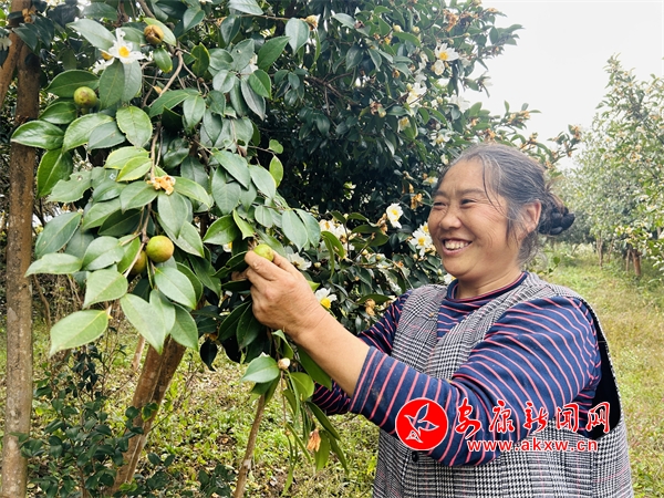 “今年在這個園子里從正月份干到現(xiàn)在,大概有30000多塊錢工資。這兩天在茶園里撿茶果150元一天,再過幾天園子里還割草,活還很多,活還好做、輕松。”村民余祖錄樸爽朗的笑聲和自豪的夸贊聲給這個靜謐的村子孕育了無限生機。陽光仍盛,他手中的活兒還未停歇,天高云淡風輕,抬眼可望的勝雪油茶花勾勒出了一幅美好的山鄉(xiāng)“豐”景圖。