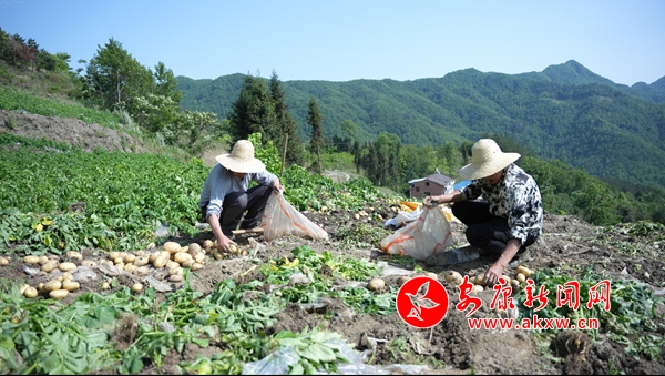 “大家加把勁兒,惠康源公司今天下午要2000斤土豆。”在漢陰縣雙河口鎮(zhèn)黃龍村的土豆種植基地里,駐村第一書記唐建安一邊忙著和村民一起采收土豆,一邊督促進度。十余位村民分工有序,忙而不亂,隨著鋤頭的揮舞,一顆顆外觀飽滿、個頭勻稱的土豆破土而出,分揀、裝袋……田地里每個人的臉上都掛滿了豐收的喜悅。