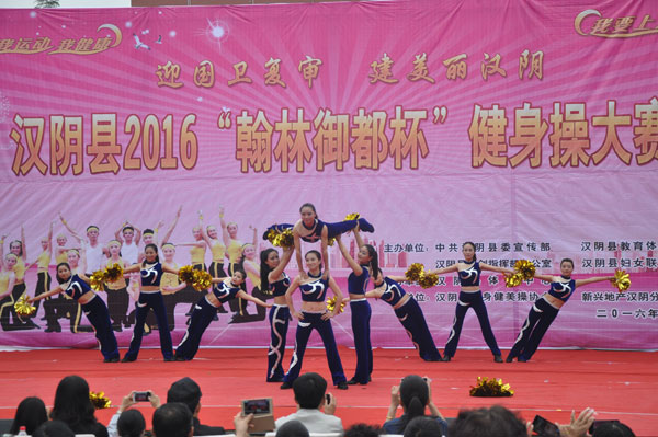 安康新聞網(wǎng)訊(通訊員 賀磊)舞姿炫麗,弦律躍動(dòng),激情燃燒……5月13日,漢陰縣舉辦“翰林御都杯”健身操大賽決賽,12支隊(duì)伍在城南鳳凰廣場(chǎng)共競(jìng)舞藝……
