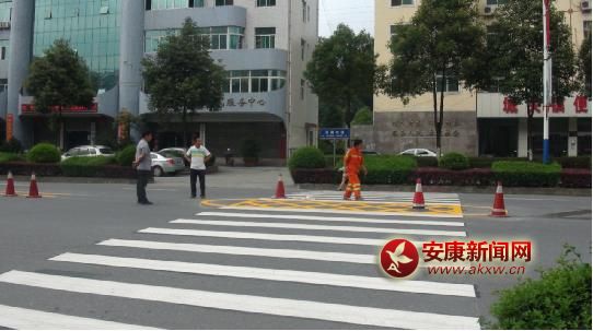 漢陰:給城區(qū)道路標(biāo)示線換新裝
