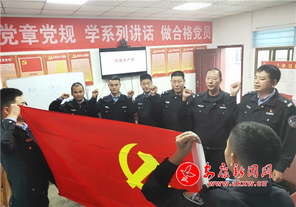 活動中,支部書記為全體黨員講了生動的一堂黨課,集體重溫了入黨誓詞,一起觀看了警示教育片《警鐘》。全體黨員干部面對鮮紅的黨旗莊嚴宣誓,重溫入黨誓詞,接受理想信念教育,心靈得到了又一次凈化。最后通過相互交流學(xué)習心得、討論各自思想感受,紛紛表示,要珍惜先輩們負重前行換來的和諧社會,努力用自己的實際行動扎實做好本職工作,以高度的政治責任感,積極為示范區(qū)人民群眾創(chuàng)造安全、暢通、有序的道路交通環(huán)境。