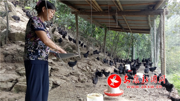 “山上一片綠,林下一片黑,心中一片喜悅啊。”查前翠看著山上的綠色和林下自己養(yǎng)殖的相互追逐的山地雞感嘆著。