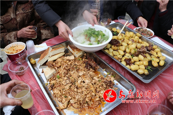 一場(chǎng)文化盛宴后,團(tuán)圓飯成了濃濃年味里最溫暖的守候。在烹飪師傅的精心烘烤下,帶有地方特色的烤全羊美食新鮮出爐,金黃酥脆的羊肉散發(fā)出誘人的香味。三陽(yáng)開泰全羊宴,把酒言歡敘豐年,村民們圍聚在一起大快朵頤,暢飲美酒,拉家常話團(tuán)圓,在熙熙攘攘的人群中,在陣陣歡聲笑語(yǔ)里,年味在心頭漫開。