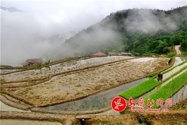 本網(wǎng)訊(通訊員 廖霖 馬桂芳)五月立夏農(nóng)耕忙,插下秧的梯田田水如鏡,波光粼粼;青山、白霧、梯田、鮮花,寧靜和諧的田園美景里,錯落有致、形態(tài)各異的梯田與朝霞和農(nóng)民忙碌勞作的身影一起構(gòu)成了一幅美麗的畫卷,吸引不少游客和攝影愛好者前來觀賞拍攝。
