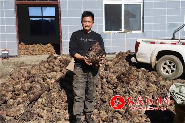 該公司經(jīng)理張乾運(yùn)告訴筆者,今年1000畝大黃他們隨手挖出一株大黃進(jìn)行稱重,重量達(dá)到了10余斤,長勢十分喜人。湖北、成都藥材商人上門收購,目前,已銷售鮮大黃400余噸,產(chǎn)值達(dá)到100余萬元。張乾運(yùn)看著豐碩的收成和一摞摞的訂單,抱著10余斤的大黃喜悅溢于言表。