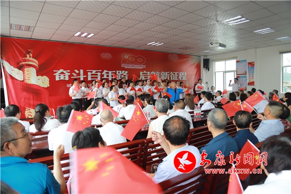 本網(wǎng)訊(通訊員 廖霖 張超)窗外細(xì)雨潤青山,室內(nèi)歌聲頌黨恩。6月25日,嵐皋縣城關(guān)鎮(zhèn)西坡社區(qū)黨總支部委員會和共駐共建單位200余名黨員和群眾歡聚一堂,舉行“奮斗百年路·啟航新征程”活動。活動在大合唱《沒有共產(chǎn)黨就沒有新中國》中正式拉開帷幕,200余名黨員和群眾揮舞著小紅旗,同唱《沒有共產(chǎn)黨就沒有新中國》,嘹亮高亢的歌聲久久回蕩,一波波“紅色浪潮”在西坡社區(qū)會議室涌動。社區(qū)黨員們用真摯的情感、燦爛的笑容、昂揚(yáng)的狀態(tài),向黨深情告白。