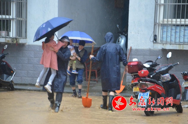 遮風(fēng)擋雨,轉(zhuǎn)移群眾。鎮(zhèn)應(yīng)急搶險(xiǎn)隊(duì)立刻集合隊(duì)員,奔赴受災(zāi)點(diǎn)轉(zhuǎn)移群眾。在安置點(diǎn),有容易受寒的嬰兒,有年過八旬的老人,還有腿腳不便的殘疾人,隊(duì)員們?yōu)槠湔陲L(fēng)擋雨,或背或抱,帶他們淌過二十多厘米深的泥水。應(yīng)急隊(duì)挨家挨戶組織轉(zhuǎn)移,“寧聽十句罵,不聽一聲哭”堅(jiān)決不掉一戶不漏一人。農(nóng)田社區(qū)兩委成員和黨員干部也自發(fā)地行動起來,一邊在活動室開辟出一個(gè)臨時(shí)安置點(diǎn),一邊協(xié)助應(yīng)急隊(duì)搶險(xiǎn)救災(zāi)。在干群共同努力下,終于將小區(qū)安全隱患戶全部轉(zhuǎn)移。