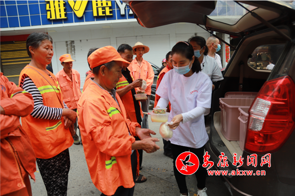 一份家常菜 ,情暖環(huán)衛(wèi)工人心。連日來,縣城的環(huán)衛(wèi)工每天清晨8時就會聚集在郵電小區(qū)門口,小河口、肖家壩三個點每天向城內(nèi)環(huán)衛(wèi)工人免費定時定點提供52份早餐。筆者看到,一群身穿著環(huán)衛(wèi)服的環(huán)衛(wèi)工人正在品嘗美食,他們臉上洋溢著喜悅的神情,伴著早餐那騰騰的熱氣,已成為嵐皋這座小城中一道靚麗的風(fēng)景。