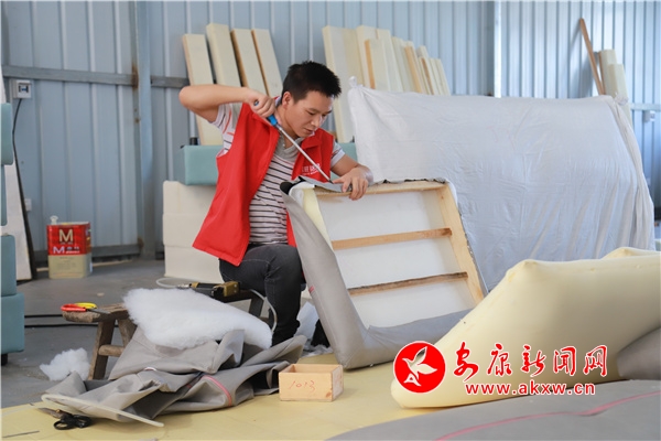 本網(wǎng)訊(通訊員 廖霖)伴著清晨的秋涼,嵐皋縣民主鎮(zhèn)銀盤村迎來(lái)新的一天。筆者走進(jìn)嵐皋縣家旺銘品家具有限公司加工廠,映入眼簾的是縫紉機(jī)前工人忙碌的身影,工人們正專注、熟練地縫制著沙發(fā)皮套,縫紉機(jī)“噠噠”響不停,她們有的在飛快地踩著縫紉機(jī),有的在整理已經(jīng)加工好的沙發(fā),有的在切割木料,十幾名工人正在各自操作臺(tái)上有序忙碌。