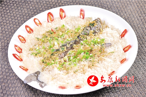 辣椒是農(nóng)家自產(chǎn)的時(shí)蔬,魚是嵐河水孕育出的鮮魚,皆是原生態(tài)無(wú)公害食品。一個(gè)鮮綠,一個(gè)鮮嫩,色香味美,佳偶天成。