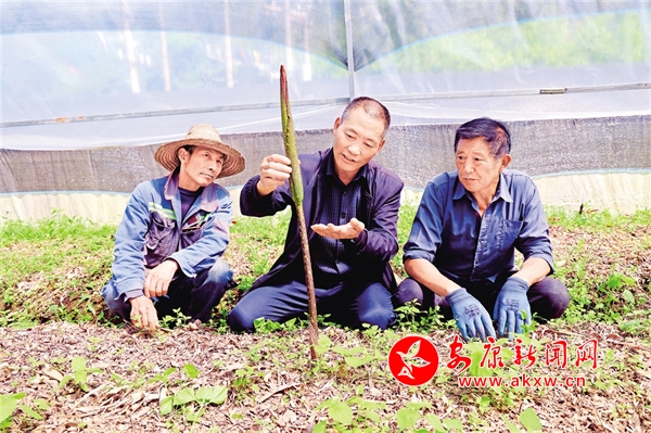 原來(lái),這兩位是鄰村的村民,利用雨天農(nóng)閑時(shí)間,專程來(lái)向他請(qǐng)教魔芋追肥和病蟲防治技術(shù),早上到家問(wèn)過(guò)王永成的妻子后,一路找到了地頭。