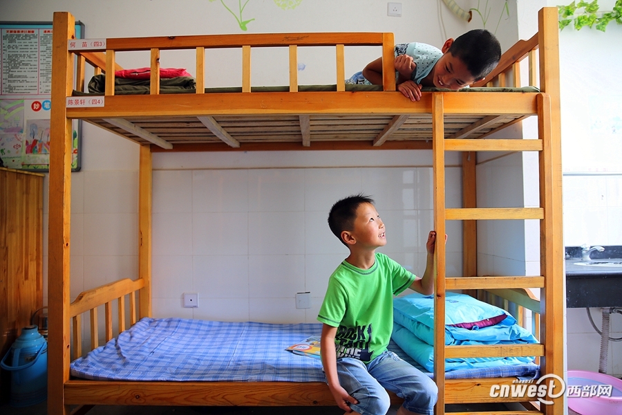 兩個住宿的孩子在宿舍開心地聊天。