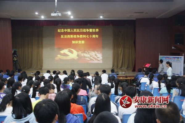 安康新聞網(wǎng)訊 9月11日晚上,寧陜中學(xué)階梯教室燈光明亮、人頭攢動(dòng),中國人民抗日戰(zhàn)爭暨世界反法西斯戰(zhàn)爭勝利70周年知識競賽正在有序進(jìn)行,來自高二、高三年級組文科班全體師生三百人參與此活動(dòng)。
