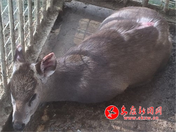 據(jù)了解,當(dāng)時四畝地村村民茍興成正沿著河邊往家走,突然發(fā)現(xiàn)有一動物在河里掙扎,仔細一看好像是一頭“青麂子”掉河里了,老茍立即喊了幾個村民一起將它救上了岸,村民們發(fā)現(xiàn)它受傷了,于是報了警,附近寧陜榮庚生物科技有限公司林麝養(yǎng)殖場的工作人員得知消息后拿來了養(yǎng)殖場的工具,對“青麂子”進行了暫時安置。