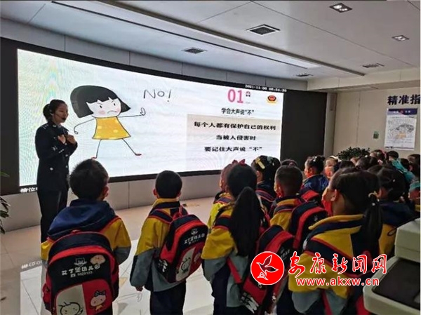 課堂上,110接警員通過PPT講解、觀看視頻監(jiān)控畫面、播放宣傳片、現(xiàn)場(chǎng)模擬接報(bào)警對(duì)話等多種方式零距離與小朋友們互動(dòng)交流,重點(diǎn)向小朋友們講解“什么情況可以撥打110、撥打110需要注意哪些問題、打通110電話時(shí)應(yīng)該如何求助”等方面知識(shí),引導(dǎo)小朋友在遇到危險(xiǎn)時(shí)正確使用撥打110電話,教育小朋友尊法守紀(jì),不亂涂亂畫、損毀公私財(cái)物,不亂穿馬路、遵守交通規(guī)則,小手拉大手,做平安建設(shè)的“小代言人”“小監(jiān)督者”。