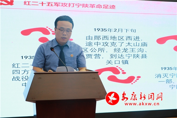 此次黨日活動(dòng)是寧陜縣檢察院結(jié)合常態(tài)化開(kāi)展“尋訪革命舊址 保護(hù)革命文物 傳承革命精神”活動(dòng),以講解寧陜紅色故事,講述辦案體悟?yàn)橹饕獌?nèi)容,圍繞尋訪環(huán)節(jié)中干警的親身經(jīng)歷、親身感受結(jié)合公益訴訟檢察工作進(jìn)行演講,從而在尋訪中體悟黨和人民英勇奮斗的光榮歷史,及時(shí)發(fā)現(xiàn)案件線索;在辦案中加深對(duì)革命傳統(tǒng)和革命文化的體悟,強(qiáng)化做好保護(hù)革命文物工作的政治自覺(jué)、法治自覺(jué)、檢察自覺(jué);在體悟中傳承紅色基因、感受信仰力量,把活動(dòng)成效轉(zhuǎn)化為對(duì)黨忠誠(chéng)、履職奉獻(xiàn)、擔(dān)當(dāng)作為的實(shí)際行動(dòng)。iZ2安康新聞網(wǎng)