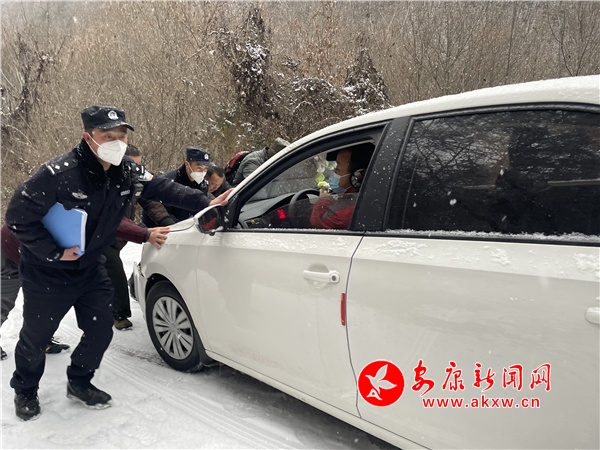 民警在巡邏途中發(fā)現(xiàn)一輛小型轎車(chē)右側(cè)前輪掉進(jìn)路邊排水溝被困,經(jīng)了解,由于該路段積雪較厚、道路較窄,加上該車(chē)駕駛員不熟悉路況,車(chē)輛未戴防滑鏈,一不小心便將車(chē)開(kāi)進(jìn)路邊排水溝,導(dǎo)致車(chē)輛被困,所幸車(chē)上人員均未受傷。因事發(fā)路段來(lái)處于半坡,道路積雪較厚,民警立即設(shè)立警示牌,進(jìn)行交通疏導(dǎo),維護(hù)現(xiàn)場(chǎng)秩序,提醒過(guò)往車(chē)輛注意行車(chē)安全。