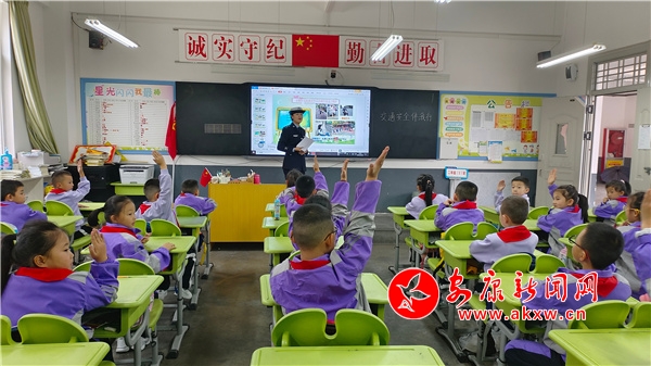 最后,宣傳民警鼓勵學(xué)生“交通安全、從我做起”,從小養(yǎng)成遵守交規(guī)、文明出行的良好習(xí)慣。把學(xué)到的交通安全知識帶回家,發(fā)揮“小手拉大手”的紐帶作用,當(dāng)好交通安全的宣傳員和監(jiān)督員,監(jiān)督家長遵守交通法規(guī),共同維護(hù)道路交通秩序,做到安全文明出行。