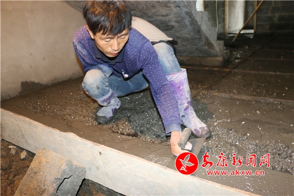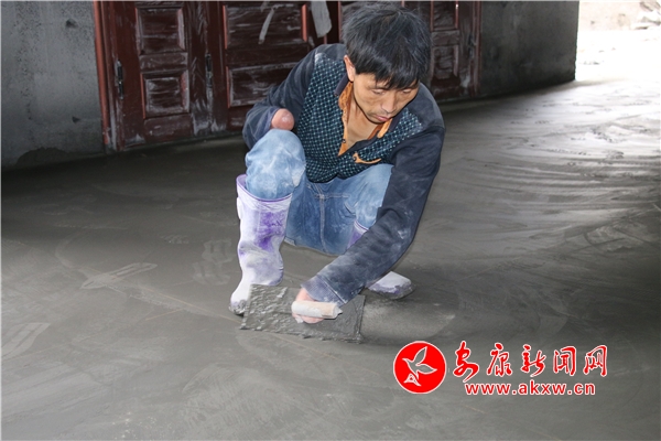 安康新聞網(wǎng)訊(通訊員 陳金山)初見鄒道兵,正在給雇主房屋地面做水磨石,只見他將右手手腕用線繩緊緊的拴在機器上掌握平衡,用僅有大拇指的左手熟練地操控著機器運轉。若非親眼所見,沒有誰會相信,眼前這一套套經(jīng)過鋪墊、打磨、打蠟而變成平滑如玉的水磨石,竟然出自一位獨指殘疾人之手。