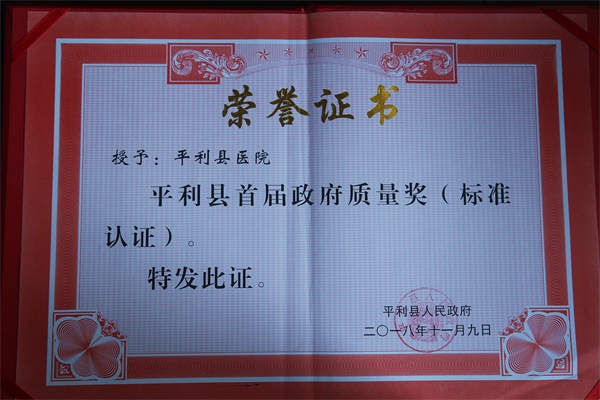 安康新聞網訊(通訊員 柯昌蘭 詹濤) 2018年11月9日,在平利縣人民政府召開的平利縣質量大會上,平利縣醫(yī)院榮獲平利縣首屆政府質量獎“標準認證獎”。