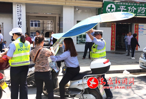 本網(wǎng)訊 (通訊員 蘇婷)針對(duì)夏季日照強(qiáng)度增大,縣城區(qū)道路出現(xiàn)大量摩托車(chē)、電動(dòng)車(chē)加裝遮陽(yáng)傘的現(xiàn)象,為有效預(yù)防和減少道路交通事故的發(fā)生,平利交警大隊(duì)城區(qū)中隊(duì)結(jié)合“三秦嚴(yán)查嚴(yán)防”攻堅(jiān)行動(dòng)工作,在城區(qū)開(kāi)展摩托車(chē)、電動(dòng)車(chē)加裝遮陽(yáng)傘專(zhuān)項(xiàng)治理行動(dòng),確保城區(qū)道路交通安全暢通。