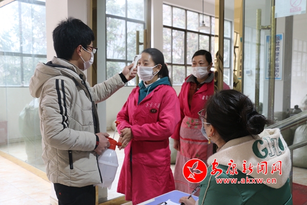本網(wǎng)訊 (通訊員 陳金山)“36.6度,體溫正常,請做好登記、消毒。”2月18日上午8點,在平利縣正陽鎮(zhèn)南溪河村社區(qū)工廠入口處,返崗的工人們按一定距離排好隊,在接受口罩佩戴檢查、測量體溫、酒精消毒,確認無異常后,陸續(xù)進入廠區(qū)。