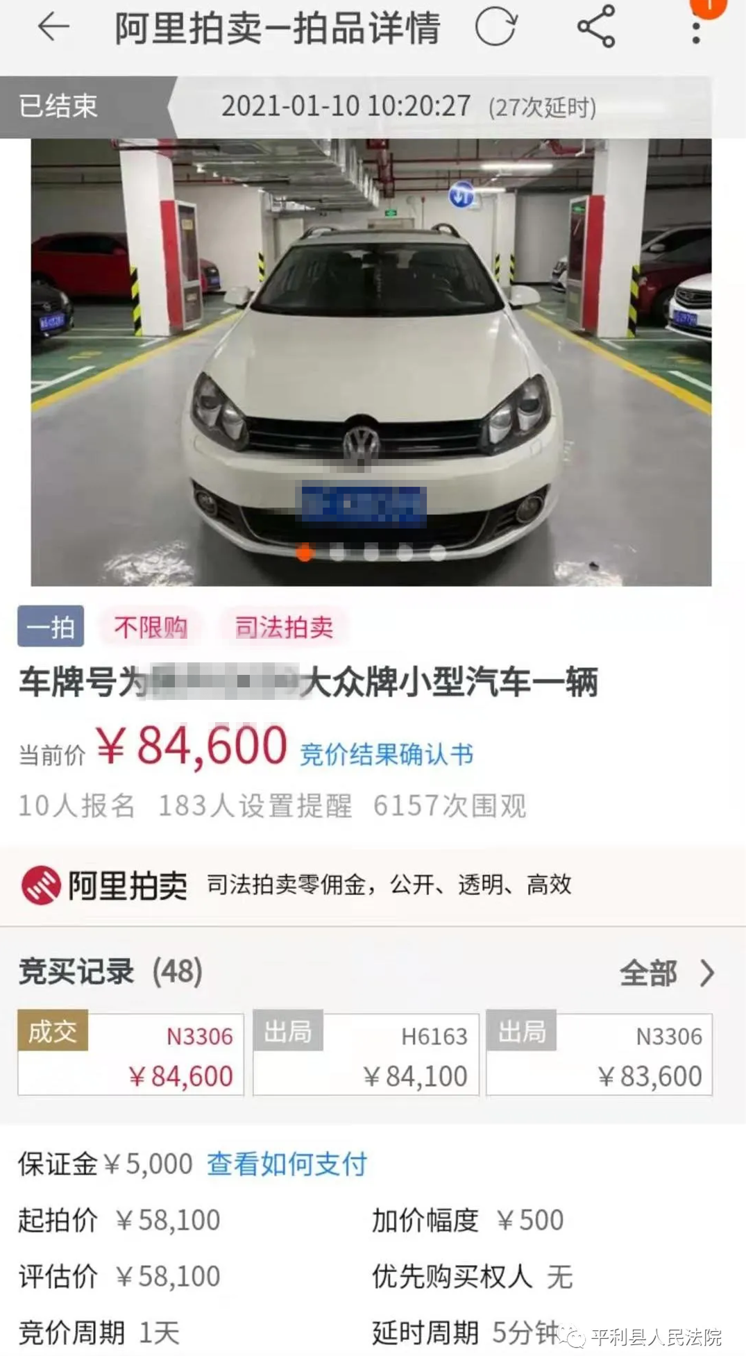 本網(wǎng)訊(通訊員 鄭欽)成交了!1月10日上午十點(diǎn)二十分,平利法院通過(guò)淘寶網(wǎng)網(wǎng)絡(luò)司法拍賣(mài)的一部大眾牌小型汽車(chē)以高出評(píng)估價(jià)百分之四十五的價(jià)格成功拍出。