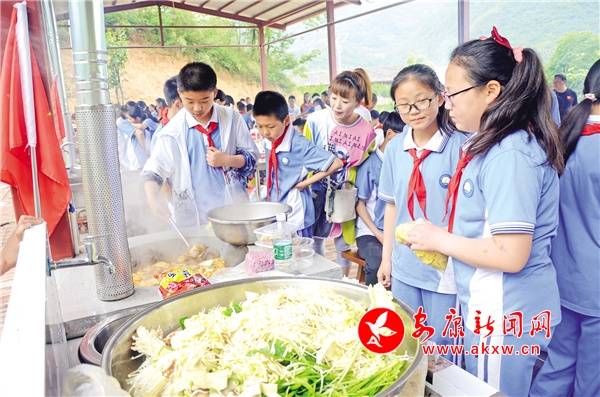 一草一木是記憶,一山一水皆含情。野營拓展課程是整個(gè)研學(xué)旅行的核心和精品,讓學(xué)生們親近自然風(fēng)物,感知熟悉泥土的芬芳和厚重。課程營地集野炊、農(nóng)事體驗(yàn)、野營體驗(yàn)、手工制作、森林探險(xiǎn)于一體,設(shè)有炊煙裊裊、荷塘春秋、耕耘樹藝、野蠻體魄四個(gè)活動(dòng)區(qū)。200余種花卉草木,滿眼芳菲,爭奇斗艷,學(xué)生們參觀辨識(shí)認(rèn)知植物,通過栽種、為植物掛牌、臨摹寫生等方式發(fā)現(xiàn)植物的奧秘,感受大自然的無窮魅力,做植物的朋友和環(huán)保小衛(wèi)士。枇杷、桃子、杏子、李子、板栗和梅子等多種果樹,可滿足學(xué)生們進(jìn)行水果采摘體驗(yàn)的需求,在東籬院里了解時(shí)令蔬菜、參與蔬菜種植,體驗(yàn)耕種的樂趣和勞動(dòng)的艱辛。在炊煙裊裊活動(dòng)區(qū),10座老式土灶,配套10個(gè)操作臺(tái)、10個(gè)清潔池、10套石磨,一字整齊排開,選菜、洗菜、切菜、生火、煮飯、炒菜,一切都井井有條。學(xué)生們?cè)谠⒔逃跇返倪^程中,感受野炊的樂趣,初步掌握飯菜制作的基本步驟和相關(guān)技巧,并感受一蔬一飯的來之不易,懂得珍惜糧食和蔬菜。參與了活動(dòng)的小學(xué)生唐梓涵深有感觸地說:“大家盡情享受一起努力做出來的美食,吃在嘴里,樂在心頭,格外美滋滋的。我們也知道了,父母每天精心為我們做好吃的,真的很不容易。”
