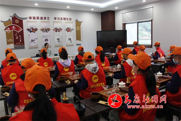 研學(xué)活動(dòng)安排了融合集體主義、勞動(dòng)實(shí)踐、文明禮儀、中國茶文化等教育于一體的豐富多彩的課程。學(xué)生通過參觀絞股藍(lán)茶葉博覽館、聆聽茶知識(shí)講座、體驗(yàn)茶藝表演等活動(dòng),從識(shí)茶、采茶、制茶、泡茶、品茶、敬茶的一舉一動(dòng)中了解我國茶文化的豐富內(nèi)涵。學(xué)習(xí)手工制茶、自己動(dòng)手表演茶藝、設(shè)計(jì)茶葉logo、繪畫“茶”之美等活動(dòng),讓學(xué)生們體會(huì)到勞動(dòng)創(chuàng)造美好生活,培養(yǎng)學(xué)生的創(chuàng)造力、觀察力、想象力,感受生活中的藝術(shù)美。整理內(nèi)務(wù)、文明用餐、光盤行動(dòng)等系列活動(dòng),讓學(xué)生們?cè)趧趧?dòng)實(shí)踐中學(xué)會(huì)自理、自立,增強(qiáng)學(xué)生動(dòng)手能力和獨(dú)立自主的生活能力。