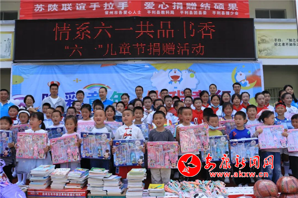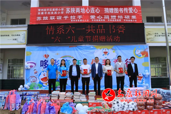 捐贈(zèng)儀式上,常州經(jīng)開區(qū)崔橋小學(xué)捐贈(zèng)圖書826冊(cè),常州經(jīng)開區(qū)愛心人士捐贈(zèng)價(jià)值10000元的體育、學(xué)習(xí)用品,平利援少會(huì)捐贈(zèng)價(jià)值4000元的愛心大禮包69套,愛心人士孫鈺華捐贈(zèng)價(jià)值4000元的牛奶67箱。