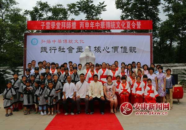 目前,學(xué)校先期開啟中華傳統(tǒng)文化夏令營(yíng),已招收50名新生,將用四個(gè)月的時(shí)間實(shí)施“伏羲教育”小學(xué)段的教育改革探索,傳承國(guó)學(xué)經(jīng)典,弘揚(yáng)中華優(yōu)秀傳統(tǒng)文化,搭建“修身齊家,構(gòu)建和諧社會(huì)”為宗旨的社會(huì)教育與家庭教育相結(jié)合的新型教育模式。在開營(yíng)儀式上,石泉“伏羲學(xué)校”的老師、學(xué)生、家長(zhǎng)身著民族傳統(tǒng)服裝開展祭孔典禮、拜師儀式、集體誦讀《弟子規(guī)》等形式弘揚(yáng)國(guó)學(xué)。