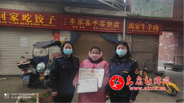 當(dāng)天,在桃園路、陽(yáng)光麗城農(nóng)貿(mào)市場(chǎng),像王玉琴這樣足不出戶收到營(yíng)業(yè)執(zhí)照的商戶有17家,市場(chǎng)商戶由于生意繁忙,且部分都是年紀(jì)較大的老年人,不懂如何辦理營(yíng)業(yè)執(zhí)照,成了“無(wú)證商販”。為了規(guī)范市場(chǎng)經(jīng)營(yíng),本著“為人民服務(wù)”的工作態(tài)度,石泉縣市場(chǎng)監(jiān)管局工作人員聯(lián)系市場(chǎng)管理方后,決定主動(dòng)上門(mén)服務(wù)為商戶辦理個(gè)體工商戶營(yíng)業(yè)執(zhí)照,商戶只需要準(zhǔn)備一部智能手機(jī)和本人身份證即可現(xiàn)場(chǎng)辦理,辦理好后,工作人員將打印好的營(yíng)業(yè)執(zhí)照送到每一位商戶手中,獲得了商戶們的一致好評(píng)。