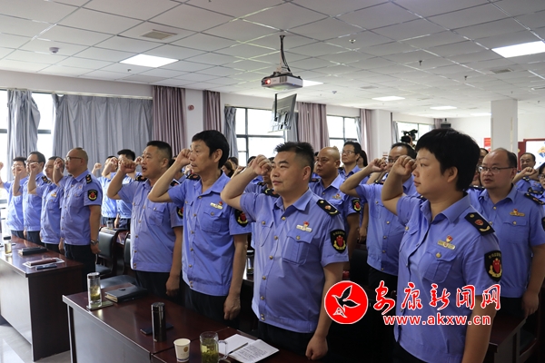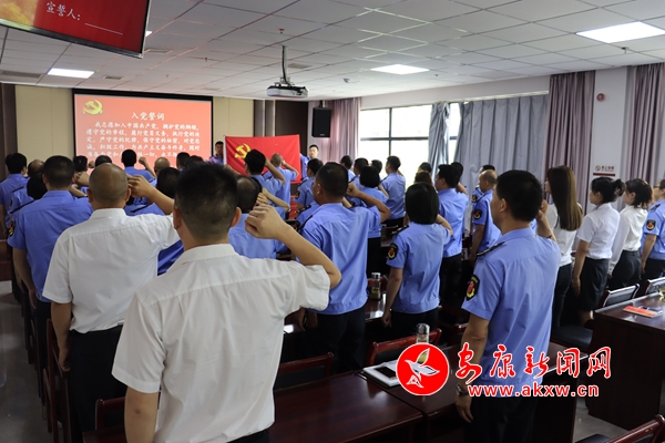 觀看完畢后,全系統(tǒng)64名黨員同志懷著無比激動、興奮和喜悅的心情,面對黨旗,再一次舉起自己的右手,莊嚴宣誓:“我志愿加入中國共產(chǎn)黨,擁護黨的綱領(lǐng)……”,錚錚誓言,句句千鈞,鏗鏘有力的聲音傳遞出每一名市場監(jiān)管系統(tǒng)黨員同志對黨的絕對忠誠,對祖國會更加繁榮富強的堅定信念。