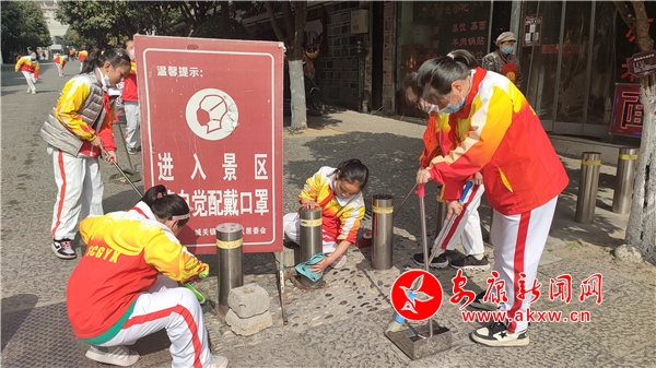 活動(dòng)中,在老師組織下,該校少先隊(duì)員有序來到老街、禹王宮、北門巷等區(qū)域。根據(jù)活動(dòng)分工,各班學(xué)生手持掃帚、鐵鍬、抹布、垃圾袋等勞動(dòng)工具分赴各自的義務(wù)清掃區(qū)。期間,少先隊(duì)員們分工明確、團(tuán)結(jié)協(xié)作,發(fā)揚(yáng)不怕臟、不怕苦、不怕累的精神,有的少先隊(duì)員用抹布擦洗街道兩側(cè)的宣傳欄,有的清掃街道上的落葉和白色垃圾,有的集中打包清運(yùn)垃圾,孩子們忙得不亦樂乎,用自己的實(shí)際行動(dòng)詮釋雷鋒精神的時(shí)代內(nèi)涵,為“三宜石泉”建設(shè)貢獻(xiàn)力量。