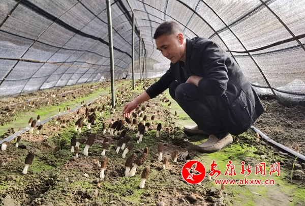 微風(fēng)拂過,此時(shí),肥沃的土地上,小羊肚菌們一簇簇正迫不及待探出灰褐色的“小腦袋”,帶著致富的希望破土而出。