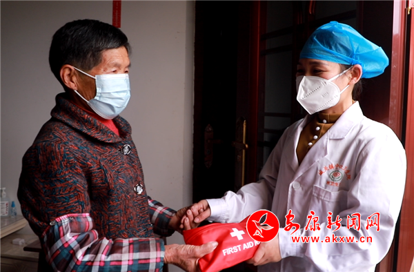 “袁阿姨,這個是免費的防疫物品,有什么問題隨時和我聯(lián)系。”石泉縣城關(guān)鎮(zhèn)黃荊壩村,71歲的袁秀梅常年獨居,村醫(yī)劉玉琴為其發(fā)放“防疫健康包”,詳細(xì)詢問袁秀梅近期健康狀況,講解個人防護(hù)和日常身體健康監(jiān)測相關(guān)知識。收到健康包的袁秀梅很開心:“送的都是我們需要的,有你們在,我特別安心。”