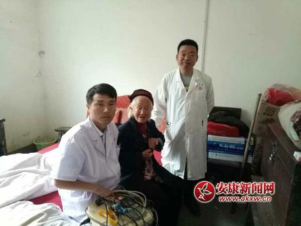 安康新聞網(wǎng)訊(通訊員 劉潔)6月7日,在石泉縣熨斗鎮(zhèn)齊建村一組,100歲高齡老人王福友家里,老人顫抖著向前來為她上門體檢的醫(yī)務(wù)人員豎起大拇指:“我今年一百歲……