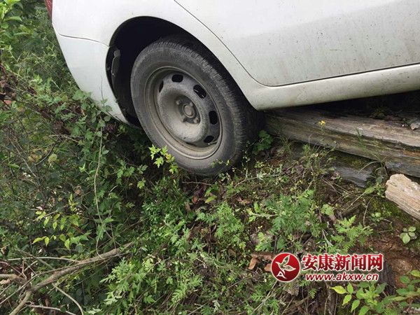 新手司機(jī)開車緊張致車掉下路沿 警民合力將車抬起