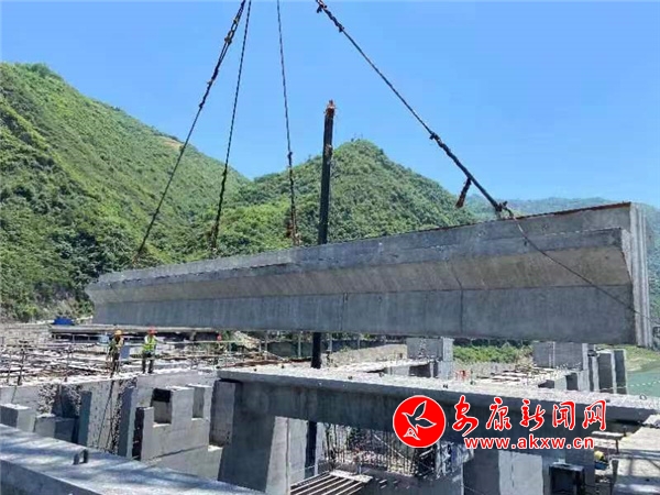 本網(wǎng)訊(通訊員 王建華 陳潔)2022年6月14日20時(shí)51分,隨著旬陽水電站大壩標(biāo)七號孔最后一榀交通梁吊裝到位,右岸壩頂交通梁全部架設(shè)完成,標(biāo)志著旬陽水電站全長462米的大壩實(shí)現(xiàn)了全線貫通。
