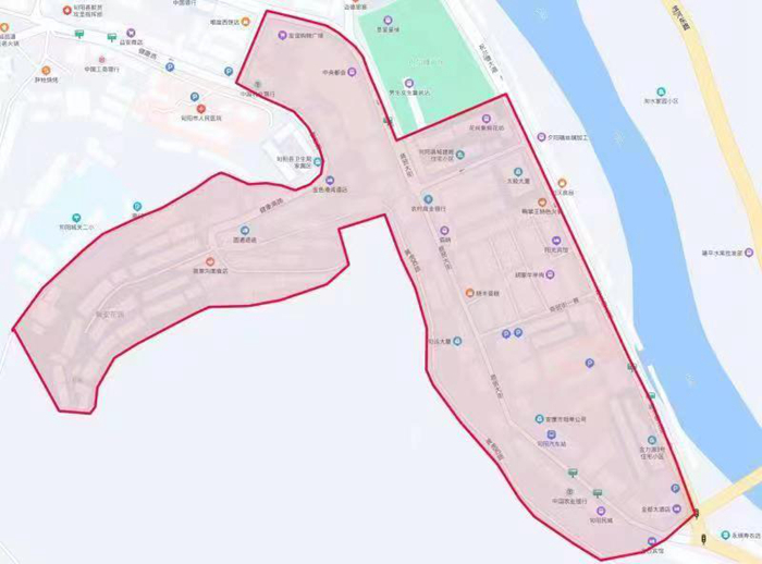 二、城關(guān)鎮(zhèn)區(qū)域:金都酒店--中醫(yī)院--商貿(mào)大街1巷東口--商貿(mào)大街4巷東口--祝爾慷廣場(chǎng)隔壁家屬樓(祝爾慷廣場(chǎng)南面)--商貿(mào)大街4巷西口--商貿(mào)大街1巷西口--南方商城--汽車站--金都酒店所覆蓋區(qū)域;城關(guān)鎮(zhèn)財(cái)政所--中央都會(huì)--外貿(mào)家屬樓--高家溝(馨安花園小區(qū))--黃虎西路全段(含衛(wèi)校路全段);麗都口--自強(qiáng)廣場(chǎng)--黨家壩加油站以北覆蓋區(qū)域繼續(xù)落實(shí)管控(詳見附圖),其他區(qū)域有序進(jìn)行正常生產(chǎn)生活,落實(shí)常態(tài)化疫情防控措施。