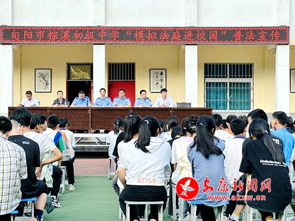 本網(wǎng)訊(通訊員 唐鬲)4月19日,隨著一聲清脆的法槌聲響起,一起以侵害健康權(quán)和名譽權(quán)案為藍(lán)本的模擬法庭審理在旬陽市棕溪初級中學(xué)操場正式開始。13名學(xué)生分別扮演審判長、人民陪審員、書記員等角色,從宣讀法庭紀(jì)律、被告人到庭,辯護(hù)人進(jìn)行辯護(hù)、證人出庭作證、合議庭合議、宣讀判決......讓師生們感受法庭審理案件的流程,讓大家對我國民事審判制度有更直觀地了解,對司法權(quán)威有更貼切的認(rèn)識。