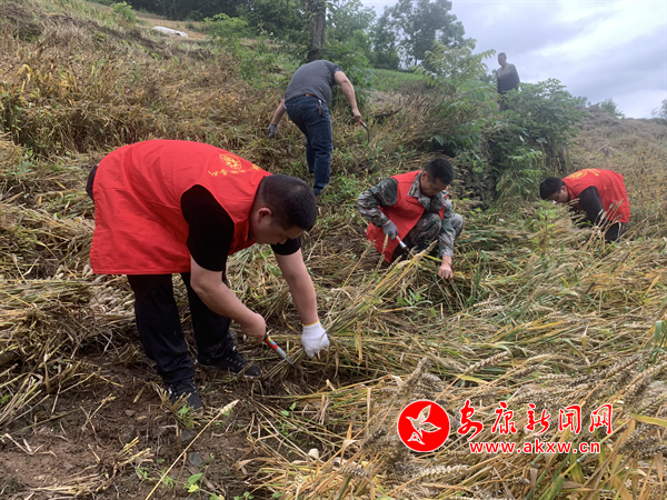 “大家再加把勁兒,這一塊馬上要收割完了,完了我們轉(zhuǎn)戰(zhàn)老李家。”在黑溝村二組石槽溝梁利鵬的麥田里,鎮(zhèn)村黨員干部、左鄰右舍與“時(shí)間”賽跑,割麥、捆扎、搬運(yùn)……大家分工協(xié)作,動(dòng)作嫻熟利索、揮汗如雨,不一會(huì)兒,五畝小麥全部收割完成。