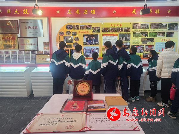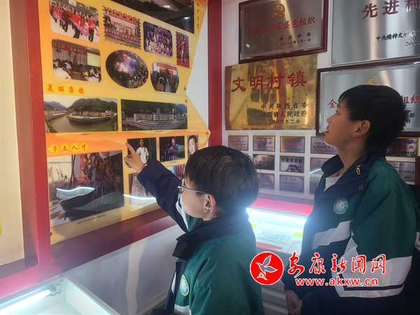 “耳聞之不如目見之,目見之不如足踐之,這幅圖,拍的就是當年正在建設的村道”“這幅圖,是曾經(jīng)的小學課堂,上課用的都是煤油燈……”村史館,陳分新利用“看圖講故事”這種喜聞樂見的方式對王院村日新月異的發(fā)展變化娓娓道來,指到哪兒,講到哪兒,他講的認真,同學們也聽的專心,一堂別開生面的“歷史課”在王院村史館生動展開。