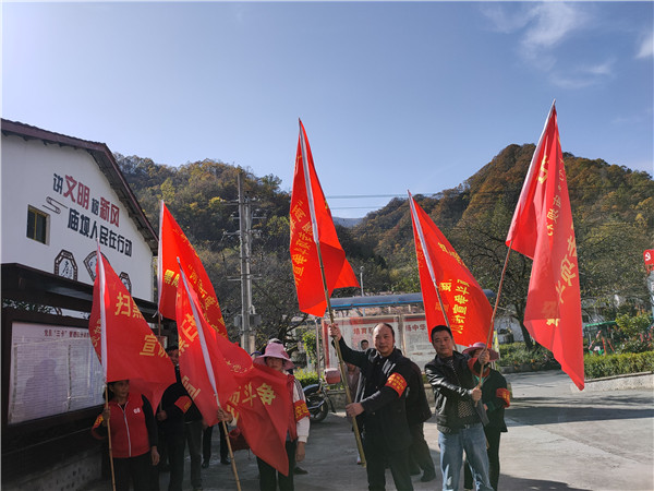 金秋時節(jié),在上竹鎮(zhèn)各村落,肩扛紅旗的宣傳隊伍行走在鄉(xiāng)間小路,為上竹鎮(zhèn)平安建設(shè)工作忙碌著。